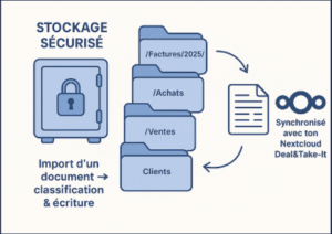 Grâce à l’analyse automatique des factures, à la création instantanée des écritures comptables et à la synchronisation Nextcloud intégrée, la PME peut enfin gérer son entreprise sans saisie manuelle, sans compétences comptables, et sans multiplier les logiciels.